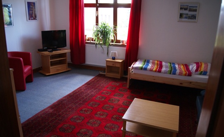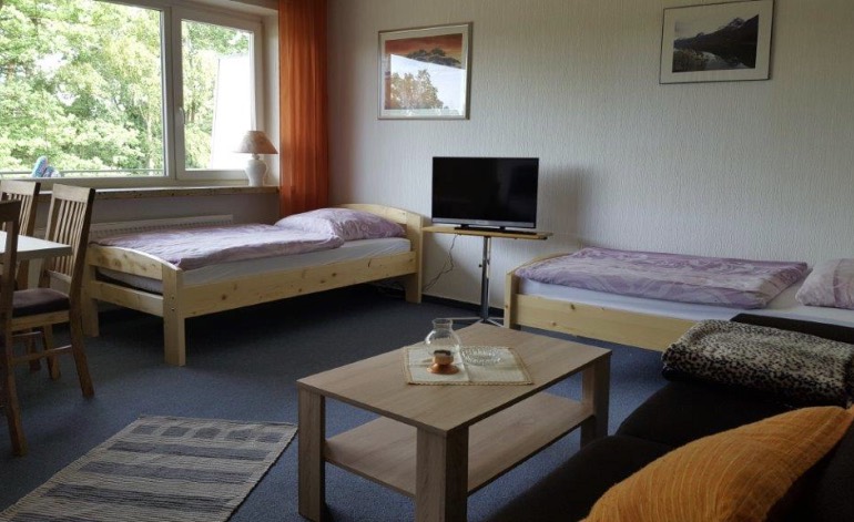 Vier 2-Zimmer-Wohnungen für bis zu 3 Personen. Wohn- und Gemeinschaftsräume, Küche, TV, WLAN.